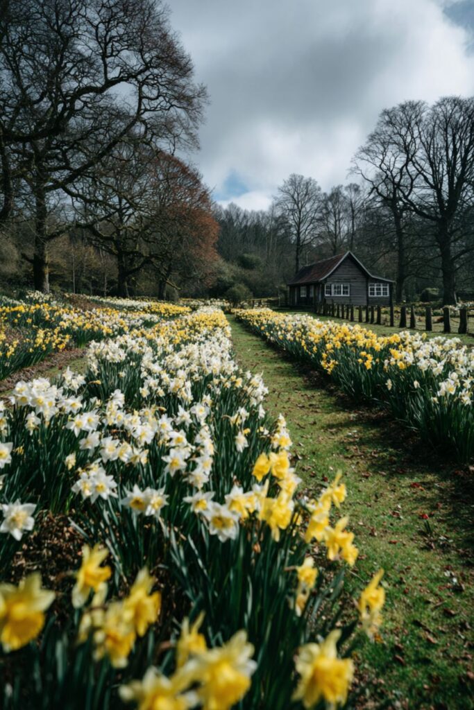 The daffodil border at Bedford stretches from the Summer House past the stable and down to the Linden Allee. Thousands of bulbs planted every autumn …