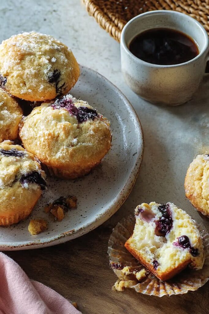 Soft, fluffy, and moist muffins bursting with fresh blueberries and a bright, zesty lemon flavor.