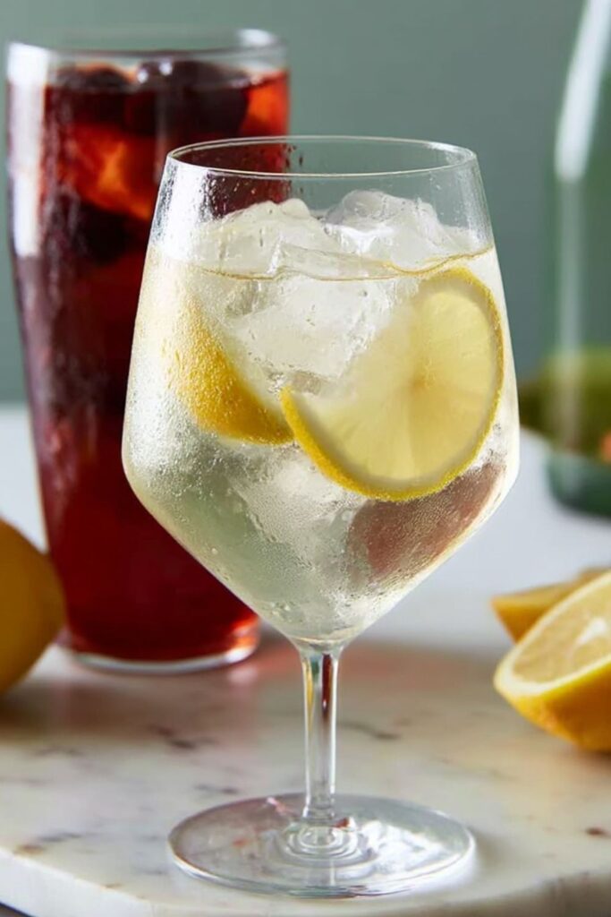 - Combine and serve: Divide the chilled white wine among the four glasses. Top each glass with the chilled sparkling lemonade. Garnish with a fresh lemon wedge and serve immediately.