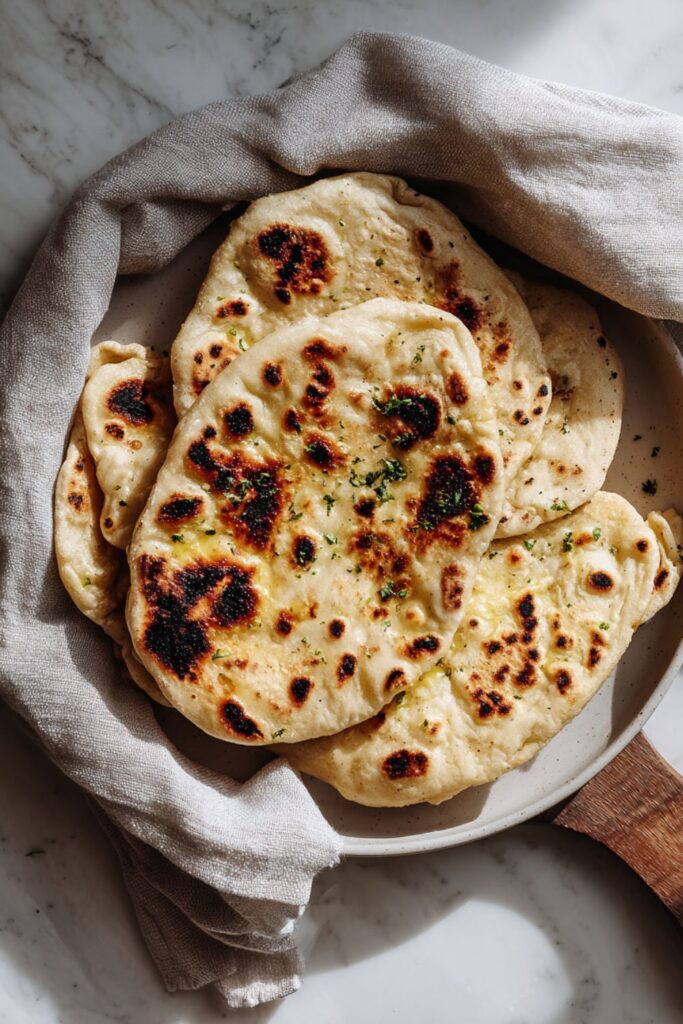 This bread is the perfect vessel for scooping up creamy dips like hummus, tzatziki, or baba ganoush. It also pairs beautifully alongside saucy mains like butter chicken, lentil soup, or a hearty vegetable stew to soak up every drop of flavor.