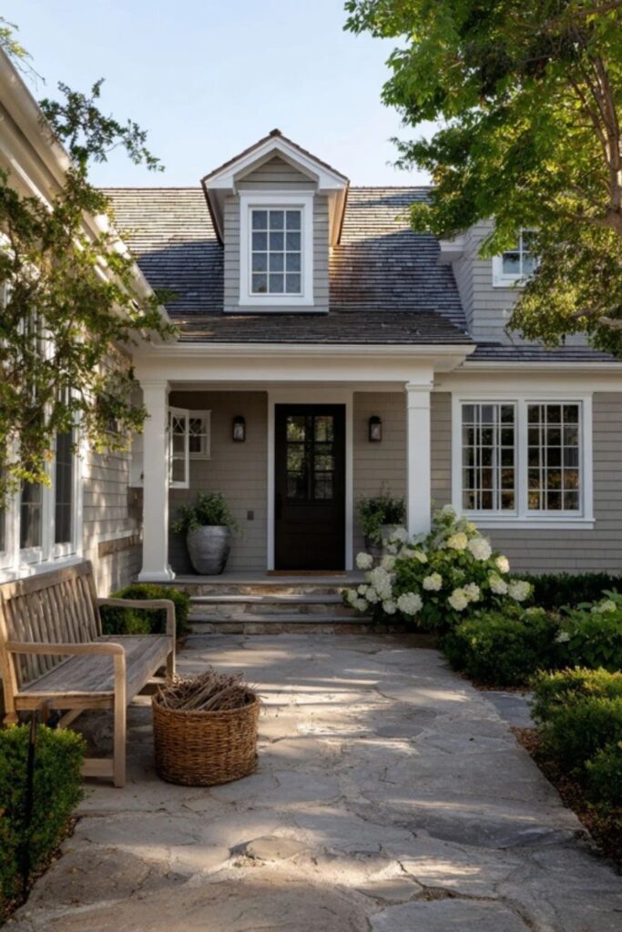 A single exterior color across every structure creates a sense of calm and intention. Inside, Bedford Gray works on walls, trim, and cabinetry as a neutral that warms rather than chills. It pairs with cream, sage, copper, and navy without competing with any of them.
