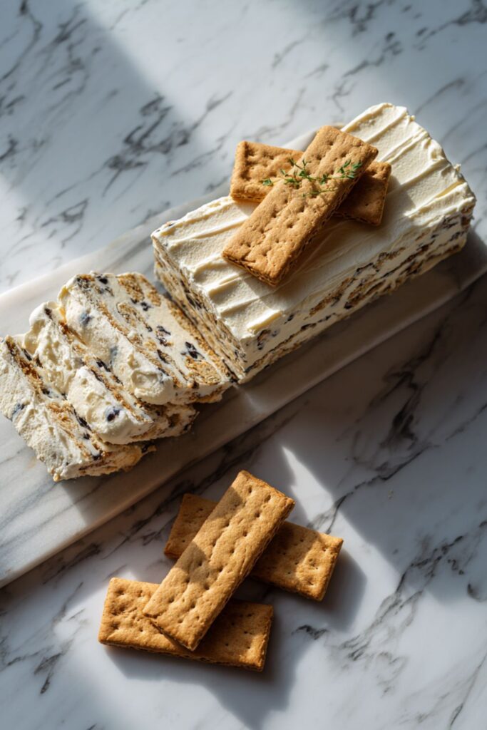 - Fill remaining space: Use 6 half-crackers, each spread with 2 tablespoons of cream mixture, to fill the rest of the space. Press lightly to nestle them into the cream.