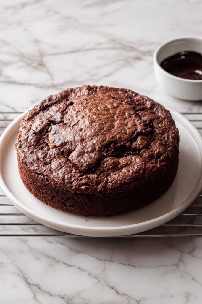 - Serve: Remove pan sides, transfer cake to a plate, and serve with chocolate glaze on the side.