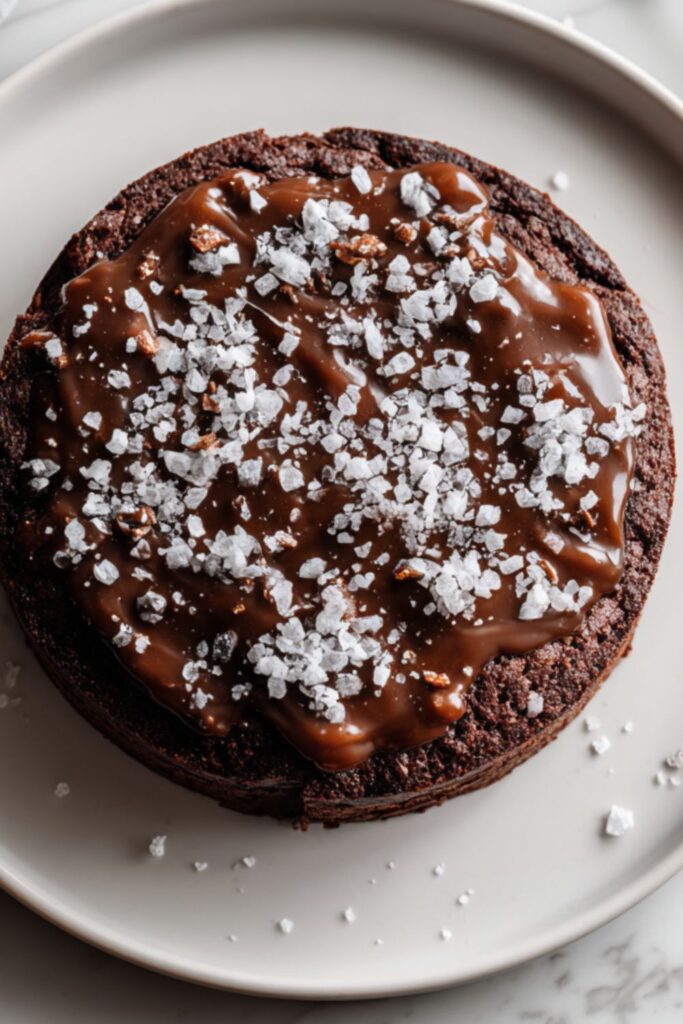 - Glaze and serve: Pour caramel over cake, sprinkle with flaky salt, slice with a warm knife, and serve with whipped cream.
