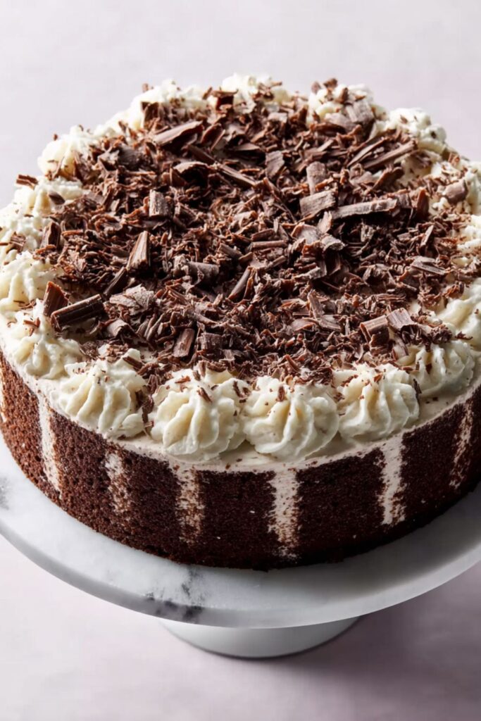 - Serve: Remove from freezer, unmold, and top with whipped cream and chocolate shavings.