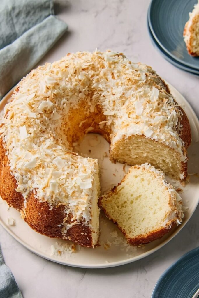 This Martha Stewart Coconut Bundt Cake is a rich and moist recipe, which uses sour cream and coconut flakes for deep flavor and texture. It’s a classic, foolproof cake with a creamy frosting and toasted coconut topping, perfect for holidays or special occasions.