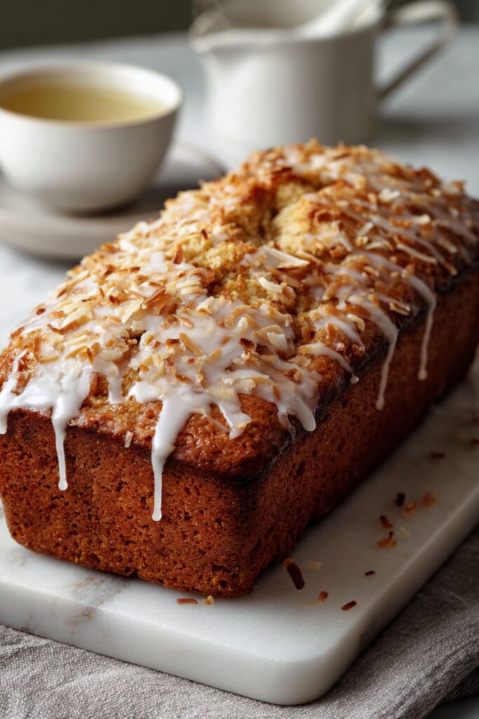 A rich coconut loaf cake with buttermilk, toasted coconut, and a silky glaze—perfect for brunch or dessert.