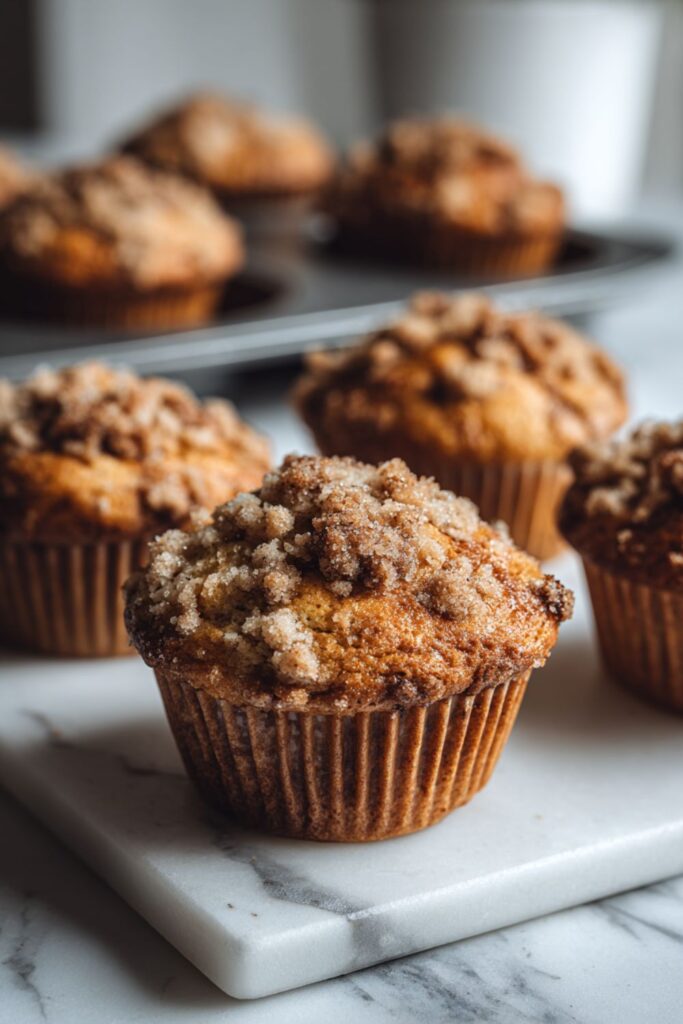 A tender, cinnamon-spiced muffin topped with a buttery brown sugar crumb—perfect for dessert or brunch.