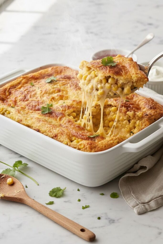 A warm, cheesy corn casserole with a touch of spice—perfect for holidays, potlucks, or any comforting dinner.