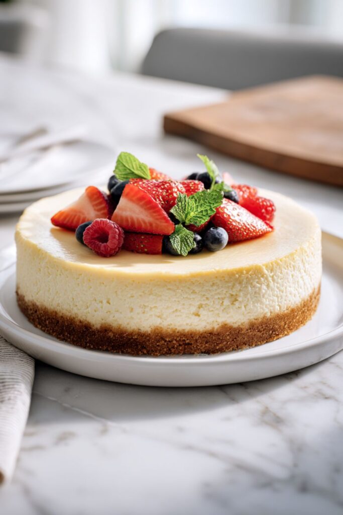A creamy, no-bake cake with a cookie crust and lemon-scented cream cheese filling—perfect for egg-free diets.