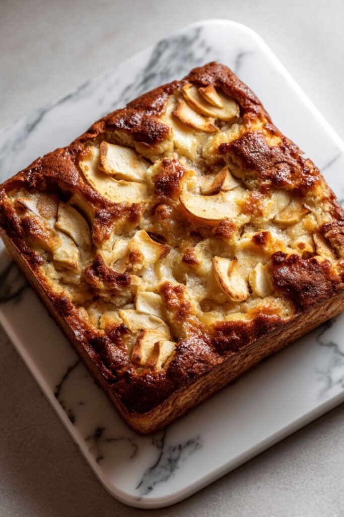 - Assemble and bake: Arrange the coated apple slices on top of the batter in overlapping rows, pressing them lightly into the batter. Bake for 45 minutes, or until a toothpick inserted into the center comes out clean.