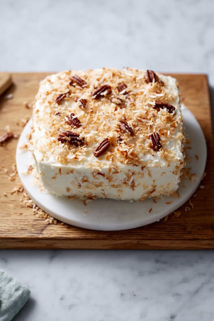 A Southern-style dessert layered with toasted coconut, pecans, and cream cheese frosting. Perfect for holidays and gatherings.