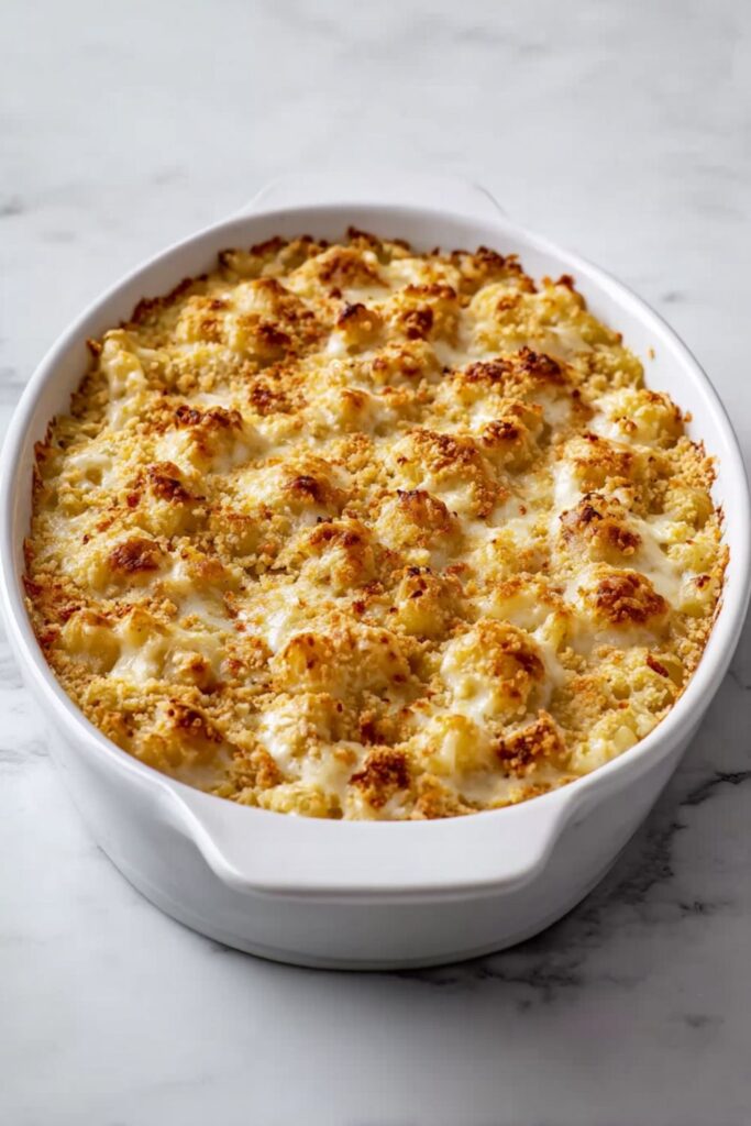 - Assemble the casserole: Pour mixture into the prepared dish. Sprinkle with the remaining cheeses and the buttered breadcrumbs.