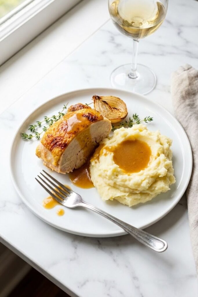 A juicy, herb-infused roast chicken with crisp skin and rich gravy—perfect for Sunday dinner or a holiday meal.