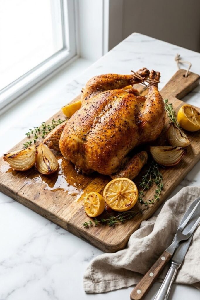 A juicy, herb-infused roast chicken with crisp skin and rich gravy—perfect for Sunday dinner or a holiday meal.